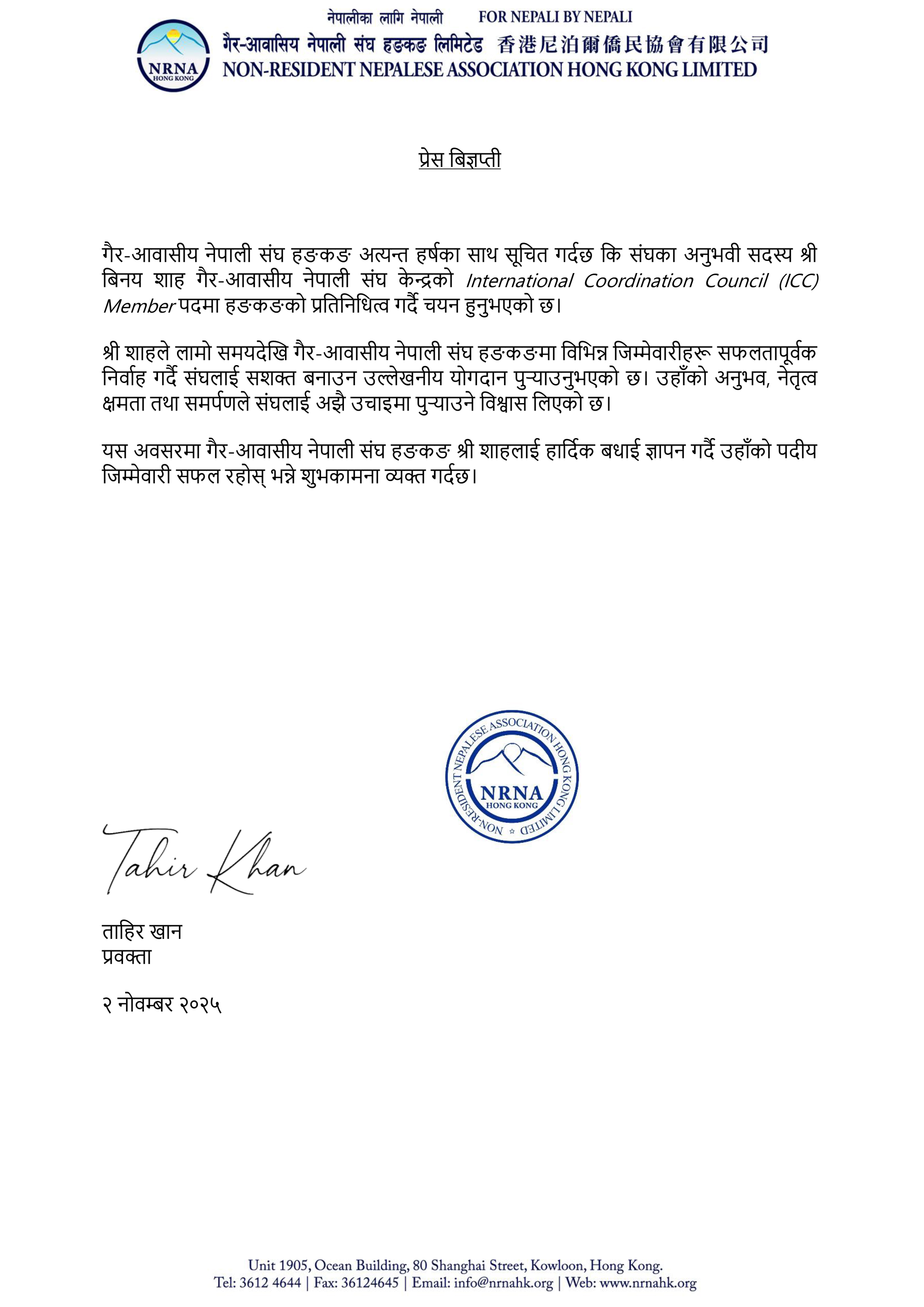 Non-Resident Nepalese Association Hong Kong NCC